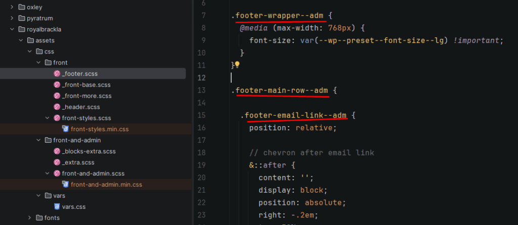 Add this prefix for all css classes which you add for blocks from admin panel to write custom styles. This will help to realize that selectors (classes) added from admin and not exists in code.